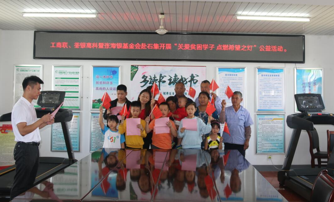 ??? 2019年9月26日,為積極響應和認真落實合肥市工商聯(lián)、總商會關于合肥市民營企業(yè)“百企幫百村”精準扶貧行動實施方案精神,荃銀高科攜手安徽張海銀種業(yè)基金會赴長豐縣陶樓鎮(zhèn)石集社區(qū)開展“關愛貧困學子,點燃希望之燈”公益活動。合肥市工商聯(lián)副主席沈鑫、經(jīng)濟處主任科員陳焱垚,安徽張海銀基金會秘書長張彤,荃銀高科工會主席、辦公室主任鄭滿生,荃銀瓜菜公司副總經(jīng)理陳孝奇,陶樓鎮(zhèn)石集社區(qū)書記靳進等村委工作人員參加活動,并進行座談交流會。