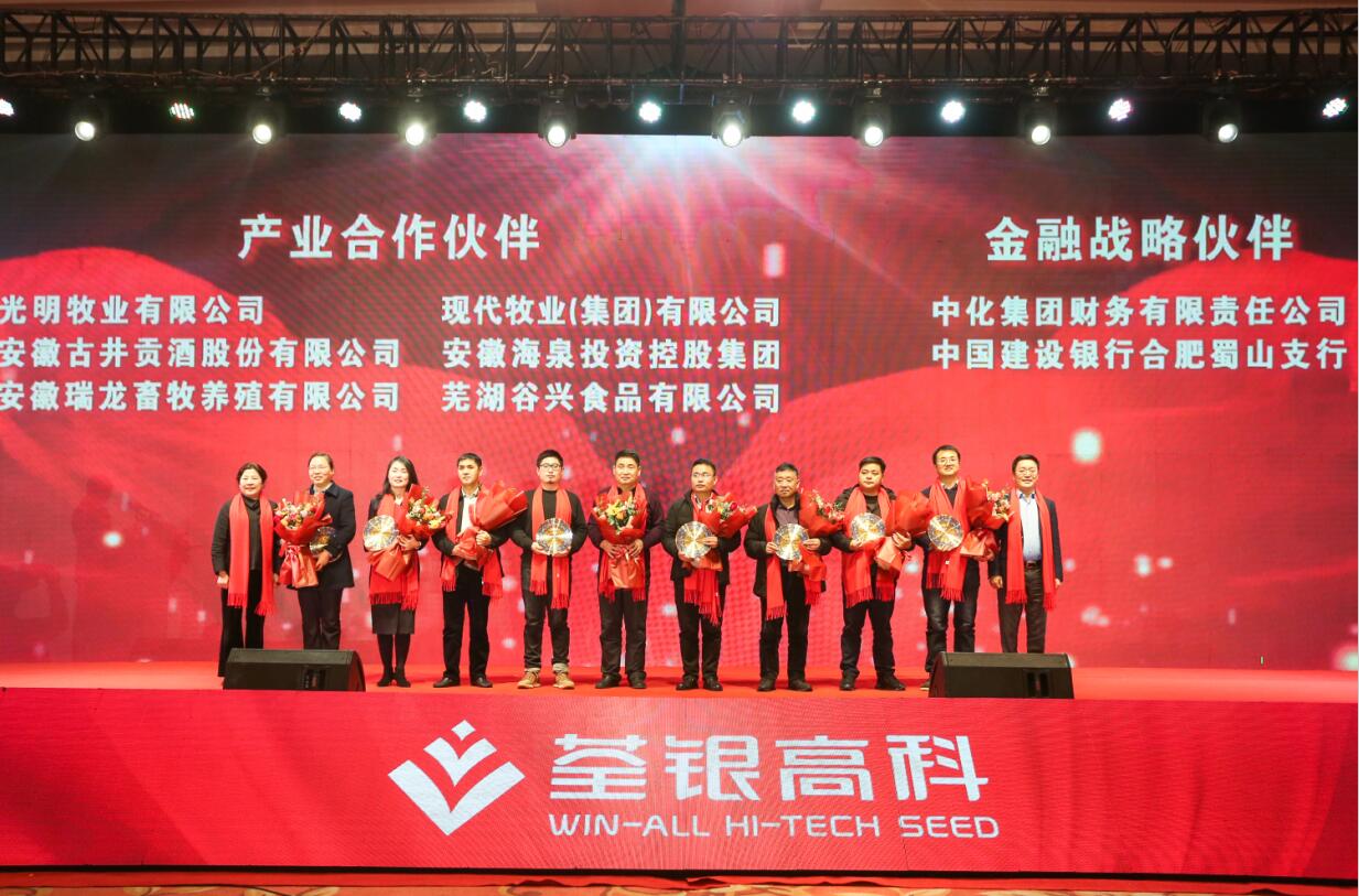 ? ? 創(chuàng)新合作,共贏發(fā)展。會(huì)上進(jìn)行了荃銀高科產(chǎn)業(yè)合作伙伴、金融戰(zhàn)略伙伴頒獎(jiǎng)儀式。近年來,荃銀高科積極開展農(nóng)業(yè)生產(chǎn)社會(huì)化服務(wù)探索,不斷加強(qiáng)與產(chǎn)業(yè)伙伴、金融公司合作,構(gòu)建“品種+品牌+資本”戰(zhàn)略發(fā)展之路,打造產(chǎn)業(yè)鏈,形成閉環(huán),創(chuàng)新發(fā)展模式,為廣大農(nóng)戶提供從種到收一條龍服務(wù),推進(jìn)一二三產(chǎn)業(yè)融合,為現(xiàn)代農(nóng)業(yè)提供整體解決方案。