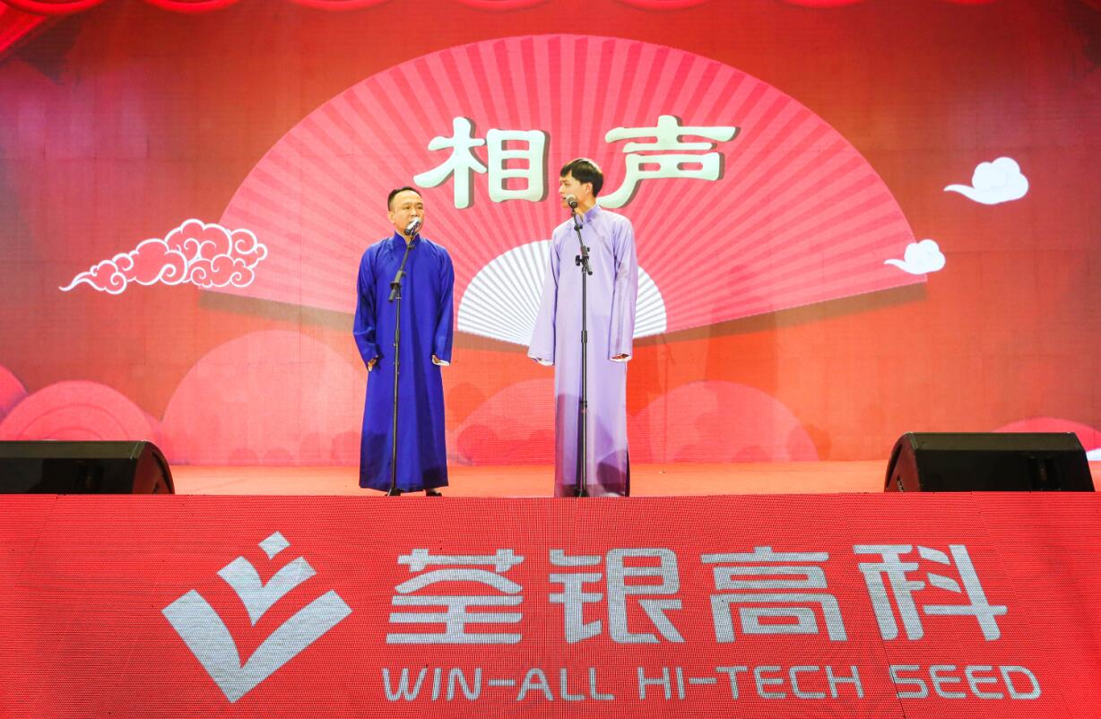 ? ? 聯(lián)歡會(huì)以喜慶祥和的歌舞表演《在希望的田野上》拉開序幕,科技公司的《街武》,將武術(shù)和街舞結(jié)合,剛?cè)岵?jì),十分炫酷;玉米公司的相聲《套牌》,道盡了一線種子銷售人員的不易;小品《西游記之女兒國2》詼諧幽默,令人捧腹大笑;詩朗誦《我愛祖國,我愛荃銀》殷情并茂,音詩畫《我和我的祖國》大氣恢弘,京歌《我是中國人》激情澎湃,荃銀人用自己的方式歌頌祖國,祝福荃銀。期間,中化農(nóng)業(yè)黨群工作部姚雁主任傾情獻(xiàn)唱《我把太陽迎進(jìn)祖國》以及黃梅戲選段,獲得掌聲陣陣。整場晚會(huì)形式多樣,精彩紛呈,大家載歌載舞,盡顯風(fēng)采魅力,現(xiàn)場還有互動(dòng)抽獎(jiǎng),獎(jiǎng)品豐厚,引得喝彩不斷。今年是荃銀高科上市十周年,加入中化農(nóng)業(yè)一周年,公司經(jīng)營班子成員及子(分)公司領(lǐng)導(dǎo)在張琴總經(jīng)理帶領(lǐng)下齊聲高唱《今天是你的生日》,為祖國、為荃銀送上由衷的祝福。晚會(huì)在高亢的歌聲中圓滿落下帷幕。