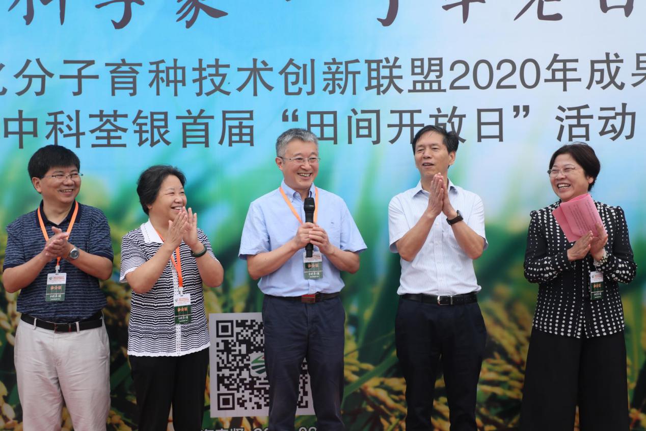 種業(yè)是現(xiàn)代農(nóng)業(yè)的“芯片”,是保障國家糧食安全端牢中國飯碗的源頭。在國家“十四五”規(guī)劃布局之年,全面打贏脫貧攻堅(jiān)戰(zhàn)收官之年,特別是在受新冠疫情影響人民群眾高度關(guān)注糧食安全之年,“6+1”國家水稻商業(yè)化分子育種技術(shù)創(chuàng)新聯(lián)盟2020 年成果展示會(huì)暨中科荃銀首屆“田間開放日”活動(dòng)于9月12日在上海召開。6+1國家聯(lián)盟首席科學(xué)家、中科院分子植物科學(xué)卓越創(chuàng)新中心主任韓斌院士,中國種子協(xié)會(huì)副會(huì)長馬淑萍,上海市農(nóng)業(yè)農(nóng)村委一級巡視員王國忠等來自全國各地的領(lǐng)導(dǎo)、專家和企業(yè)家近百人出席,6+1國家聯(lián)盟理事長、荃銀高科副董事長、總經(jīng)理張琴女士主持本次活動(dòng)。